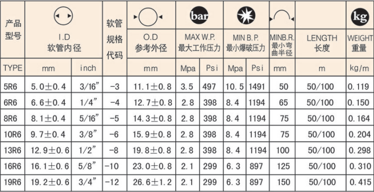 SAE J517 100R6 單層纖維編織(非金屬)橡膠液壓軟管