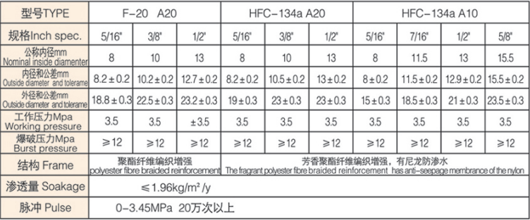 特性:軟管對制冷劑有優(yōu)良的耐侵蝕性能,具有可靠的承壓能力,在空調(diào)系統(tǒng)的惡劣環(huán)境下,有優(yōu)良的適應(yīng)性。